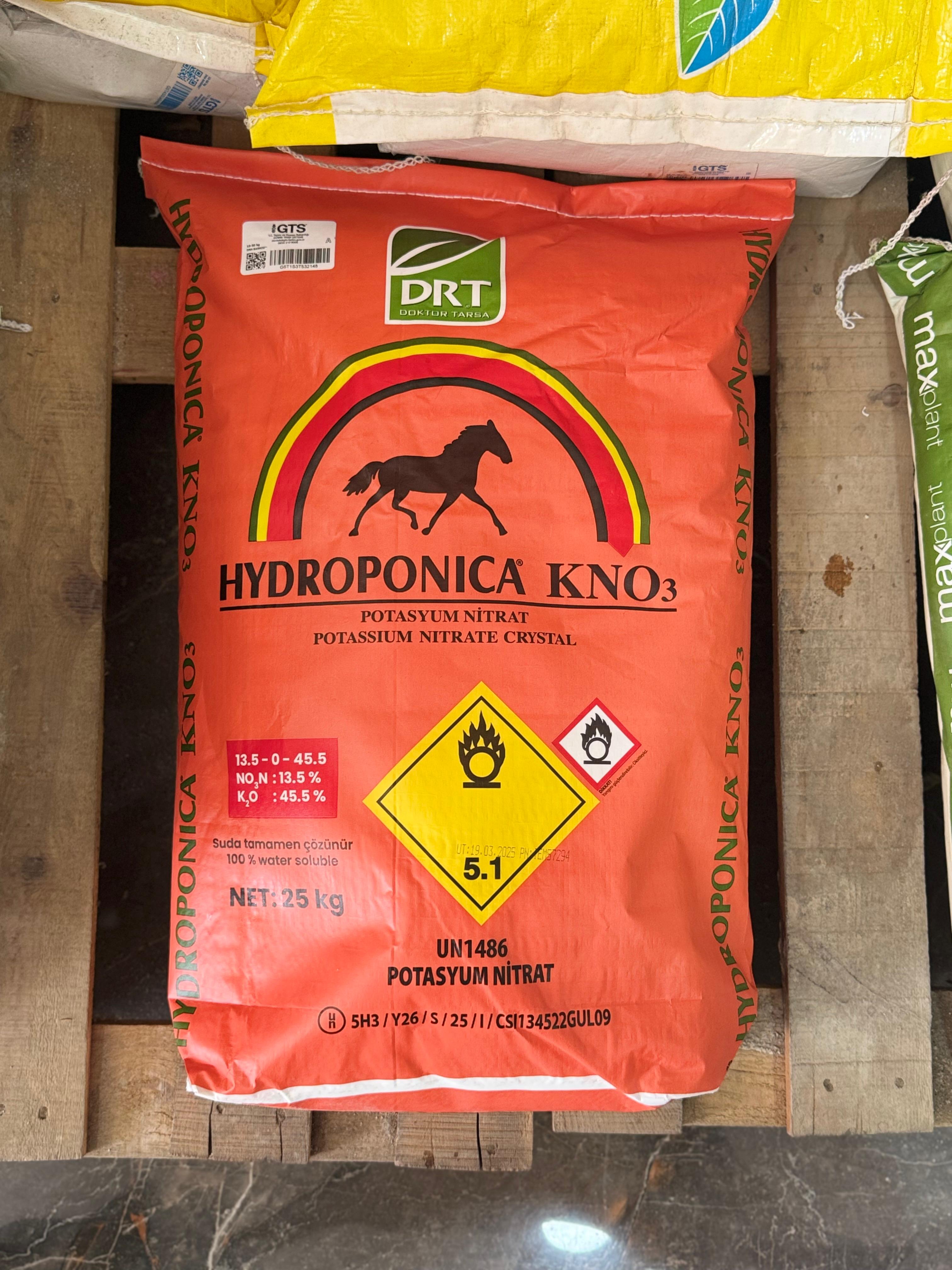 Bitkilerin meyve oluşturma, gelişme ve hasat dönemlerinde 2-5 kg/da dozda Hydroponica Potasyum Nitrat kullanılmalıdır. Bitkinin gelişme ve hasat dönemlerinde kaliteli meyve ve bol ürün alınmasına ve dengeli bir büyüme göstermesine yardımcı olur.